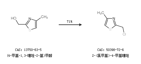 1.通过(4-甲基-1,3-噻唑-2-基)甲醇合成2-(氯甲基)-4-甲基噻唑,收率约71%;