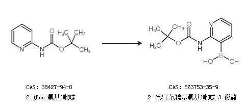 2.通过三异丁基硼酸和2-(Boc-氨基)吡啶合成2-(叔丁氧羰基氨基)吡啶-3-硼酸