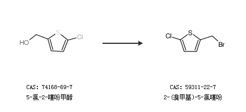 1.通过5-氯-2-噻吩甲醇合成2-(溴甲基)-5-氯噻吩