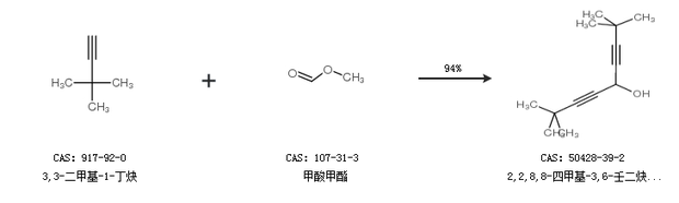 2.通过3,3-二甲基-1-丁炔和甲酸甲酯合成2,2,8,8-四甲基-3,6-壬二炔-5-醇,收率约94%;