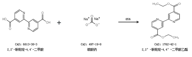 2.通过2,2''-联吡啶-4,4''-二甲酸和碳酸钠合成2,2’-联吡啶-4,4’-二甲酸乙酯,收率约85%;