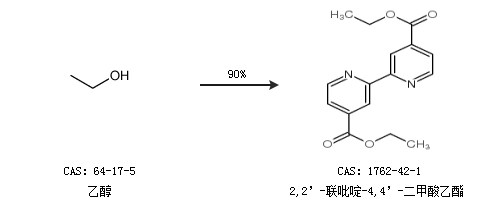 1.通过乙醇合成2,2’-联吡啶-4,4’-二甲酸乙酯,收率约90%;