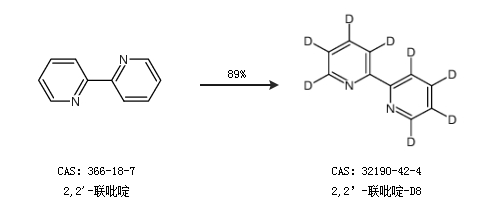 1.通过2,2''-联吡啶合成2,2’-联吡啶-D8,收率约89%;