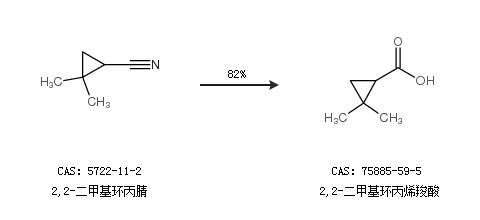 1.通过2,2-二甲基环丙腈合成2,2-二甲基环丙烯羧酸,收率约82%;