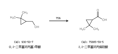 2.通过(2,2-二甲基环丙基)甲醇合成2,2-二甲基环丙烯羧酸,收率约75%;