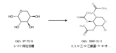 2.通过L-(+)-阿拉伯糖合成2,3,4-三-O-乙酰基-α-D-木吡喃糖苷溴