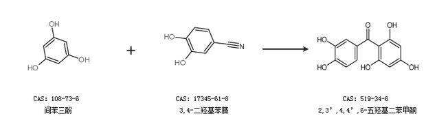 1.通过间苯三酚和3,4-二羟基苯腈合成2,3’,4,4’,6-五羟基二苯甲酮