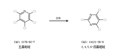 1.通过五氯吡啶合成2,4,5,6-四氯嘧啶,收率约22%;