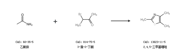 1.通过乙酰胺和3-溴-2-丁酮合成2,4,5-三甲基噻唑