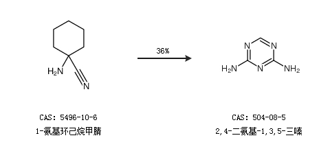 1.通过1-氨基环己烷甲腈合成2,4-二氨基-1,3,5-三嗪,收率约36%;