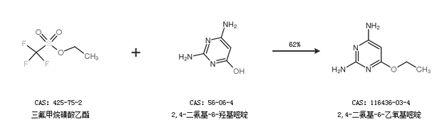 2.通过三氟甲烷磺酸乙酯和2,4-二氨基-6-羟基嘧啶合成2,4-二氨基-6-乙氧基嘧啶,收率约62%;