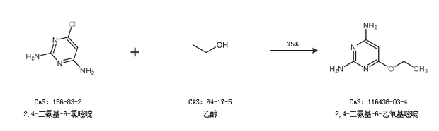 1.通过2,4-二氨基-6-氯嘧啶和乙醇合成2,4-二氨基-6-乙氧基嘧啶,收率约75%;