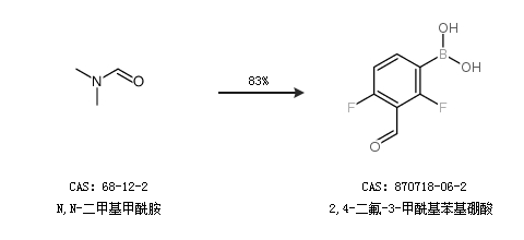 1.通过N,N-二甲基甲酰胺合成2,4-二氟-3-甲酰基苯基硼酸,收率约83%;