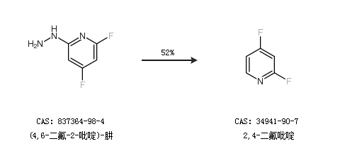 2.通过(4,6-二氟-2-吡啶)-肼合成2,4-二氟吡啶,收率约52%;