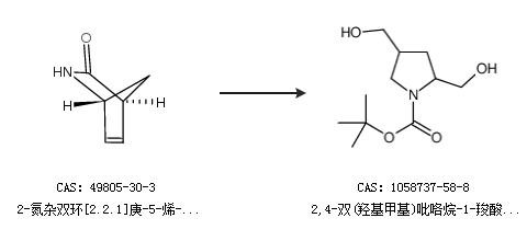 1.通过2-氮杂双环[2.2.1]庚-5-烯-3-酮合成2,4-双(羟基甲基)吡咯烷-1-羧酸叔丁酯