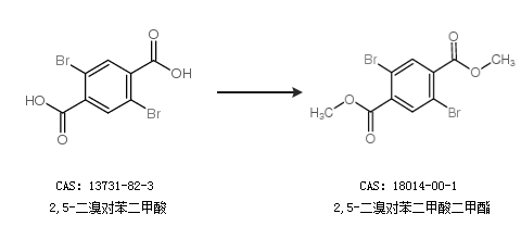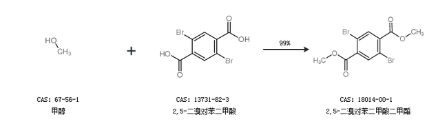 1.通过甲醇和2,5-二溴对苯二甲酸合成2,5-二溴对苯二甲酸二甲酯,收率约99%;