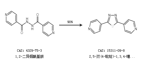 2.通过1,2-二异烟酰基肼合成2,5-双(4-吡啶)-1,3,4-噻二唑,收率约90%;
