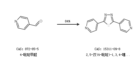 1.通过4-吡啶甲醛合成2,5-双(4-吡啶)-1,3,4-噻二唑,收率约84%;
