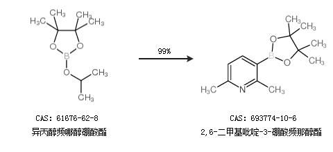 1.通过异丙醇频哪醇硼酸酯合成2,6-二甲基吡啶-3-硼酸频那醇酯,收率约99%;