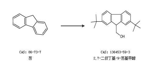 2.通过芴合成2,7-二叔丁基-9-芴基甲醇