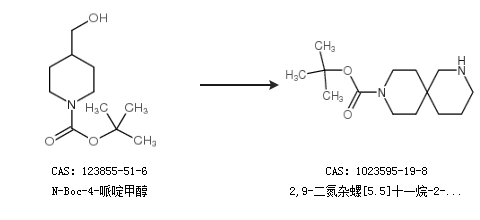 1.通过N-Boc-4-哌啶甲醇合成2,9-二氮杂螺[5.5]十一烷-2-甲酸叔丁酯