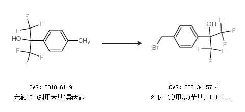 2.通过六氟-2-(对甲苯基)异丙醇合成2-[4-(溴甲基)苯基]-1,1,1,3,3,3-六氟丙烷-2-醇