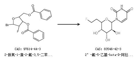 2.通过5-乙基尿嘧啶合成2’-氟-5-乙基-beta-D-阿拉伯呋喃基尿嘧啶