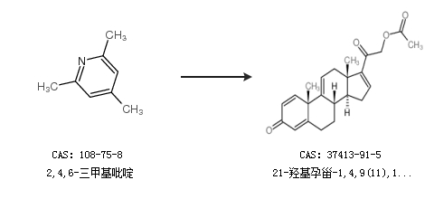 1.通过2,4,6-三甲基吡啶合成21-羟基孕甾-1,4,9(11),16-四烯-3,20-二酮-21-醋酸酯