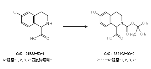 2.通过6-羟基-1,2,3,4-四氢异喹啉-1-甲酸合成2-Boc-6-羟基-1,2,3,4-四氢异喹啉-1-甲酸