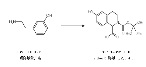 1.通过间羟基苯乙胺合成2-Boc-6-羟基-1,2,3,4-四氢异喹啉-1-甲酸