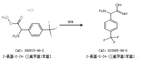 1.通过2-氨基-2-[4-(三氟甲基)苯基]乙酸甲酯盐酸盐合成2-氨基-2-[4-(三氟甲基)苯基]乙酰胺,收率约90%;