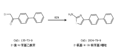 1.通过2-溴-4-苯基乙酰苯合成2-氨基-4-(4-联苯基)噻唑,收率约82%;