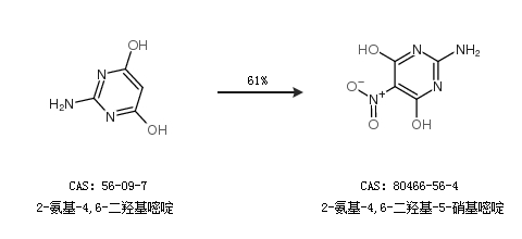 1.通过2-氨基-4,6-二羟基嘧啶合成2-氨基-4,6-二羟基-5-硝基嘧啶,收率约61%;