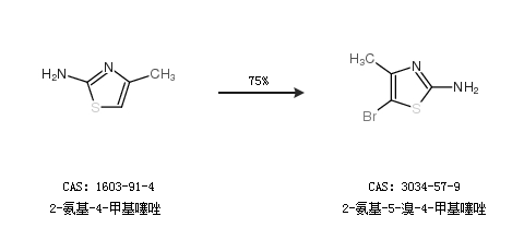1.通过2-氨基-4-甲基噻唑合成2-氨基-5-溴-4-甲基噻唑,收率约75%;
