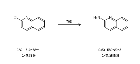 1.通过2-氯喹啉合成2-氨基喹啉,收率约70%;
