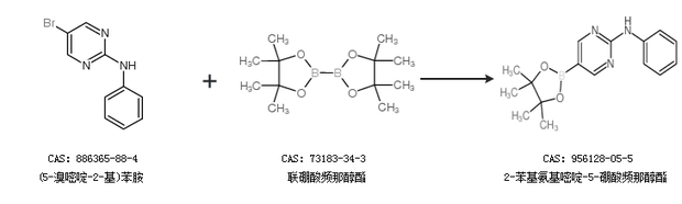 1.通过(5-溴嘧啶-2-基)苯胺和联硼酸频那醇酯合成2-苯基氨基嘧啶-5-硼酸频那醇酯
