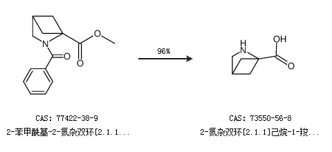 1.通过2-苯甲酰基-2-氮杂双环[2.1.1]己烷-1-羧酸甲酯合成2-氮杂双环[2.1.1]己烷-1-羧酸盐酸盐,收率约96%;