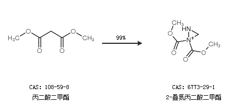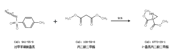 2.通过对甲苯磺酰叠氮和丙二酸二甲酯合成2-叠氮丙二酸二甲酯,收率约91%;
