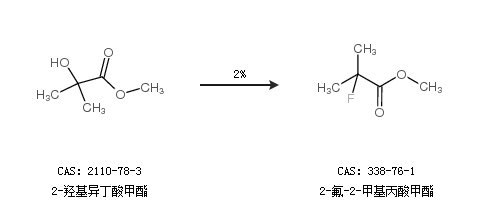 2.通过2-羟基异丁酸甲酯合成2-氟-2-甲基丙酸甲酯,收率约2%;