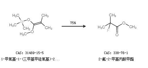 1.通过1-甲氧基-1-(三甲基甲硅氧基)-2-甲基-1-丙烯合成2-氟-2-甲基丙酸甲酯,收率约75%;