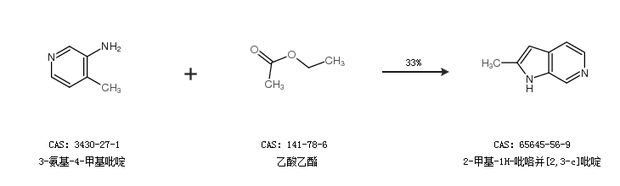 1.通过3-氨基-4-甲基吡啶和乙酸乙酯合成2-甲基-1H-吡咯并[2,3-c]吡啶,收率约33%;