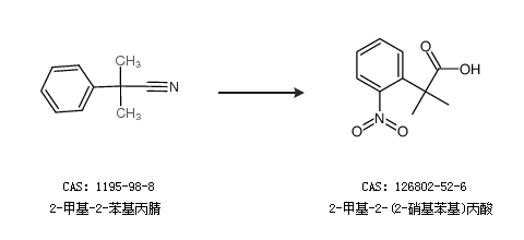 2.通过2-甲基-2-苯基丙腈合成2-甲基-2-(2-硝基苯基)丙酸