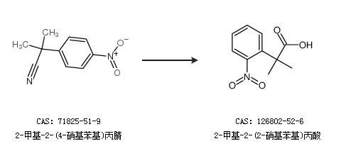 1.通过2-甲基-2-(4-硝基苯基)丙腈合成2-甲基-2-(2-硝基苯基)丙酸