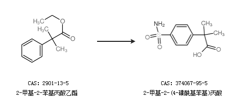 1.通过2-甲基-2-苯基丙酸乙酯合成2-甲基-2-(4-磺酰基苯基)丙酸