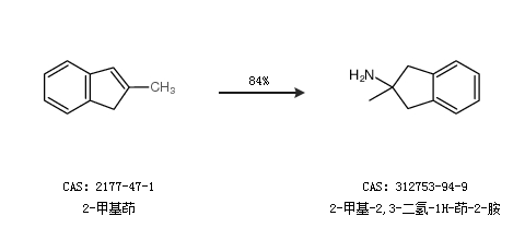 1.通过2-甲基茚合成2-甲基-2,3-二氢-1H-茚-2-胺,收率约84%;