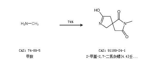 1.通过甲胺合成2-甲基-2,7-二氮杂螺[4.4]壬烷-1,3,8-三酮,收率约74%;