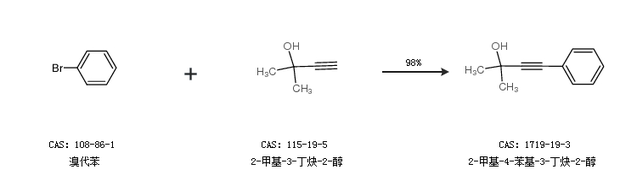 1.通过溴代苯和2-甲基-3-丁炔-2-醇合成2-甲基-4-苯基-3-丁炔-2-醇,收率约98%;