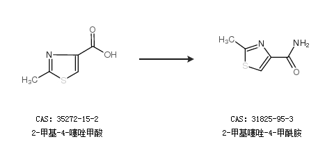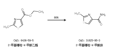 1.通过2-甲基噻唑-4-甲酸乙酯合成2-甲基噻唑-4-甲酰胺,收率约88%;