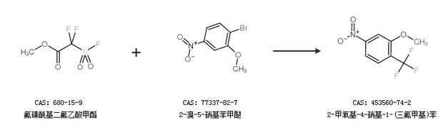 2.通过氟磺酰基二氟乙酸甲酯和2-溴-5-硝基苯甲醚合成2-甲氧基-4-硝基-1-(三氟甲基)苯