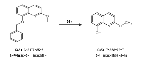 1.通过8-苄氧基-2-甲氧基喹啉合成2-甲氧基-喹啉-8-醇,收率约97%;